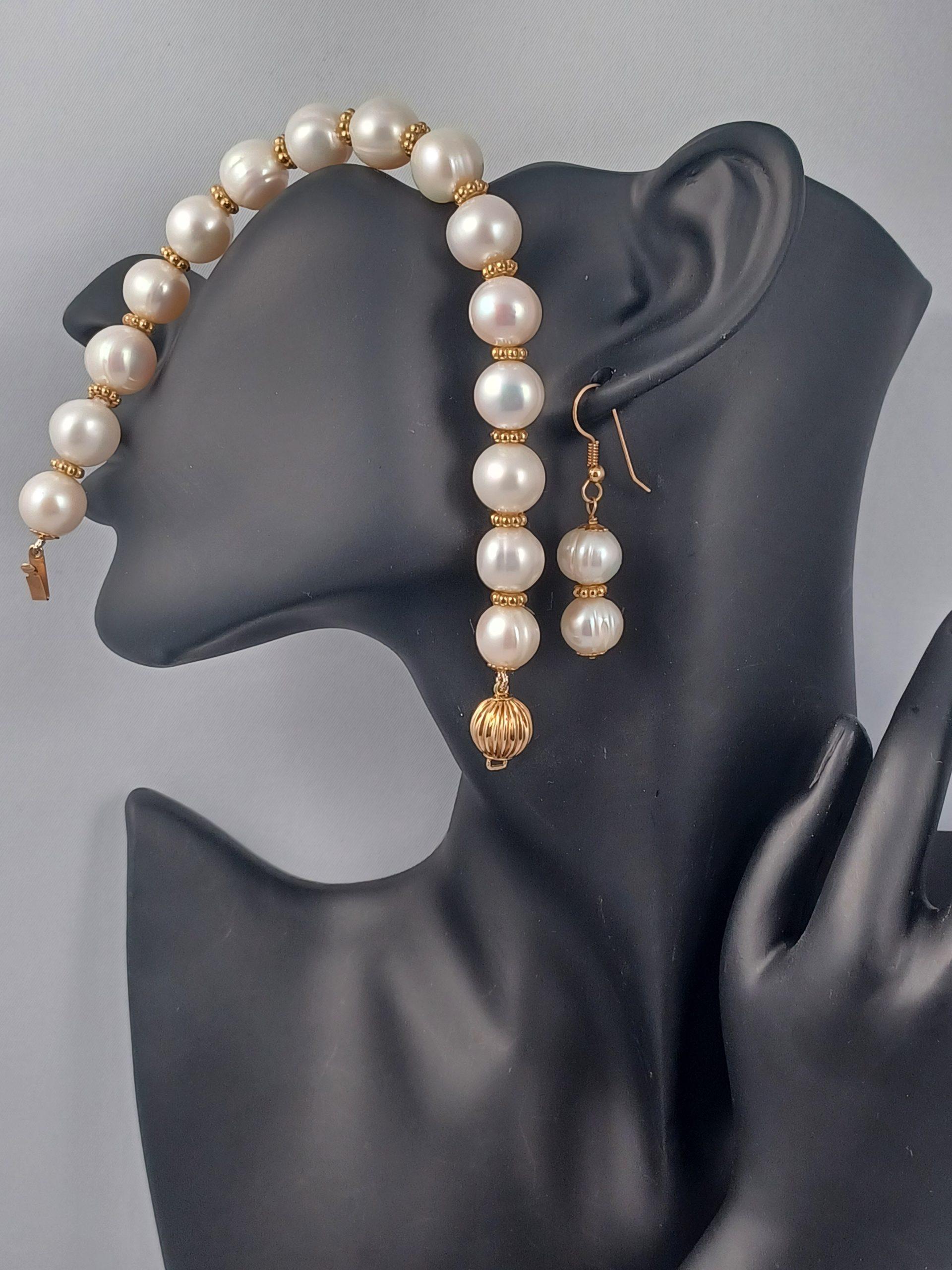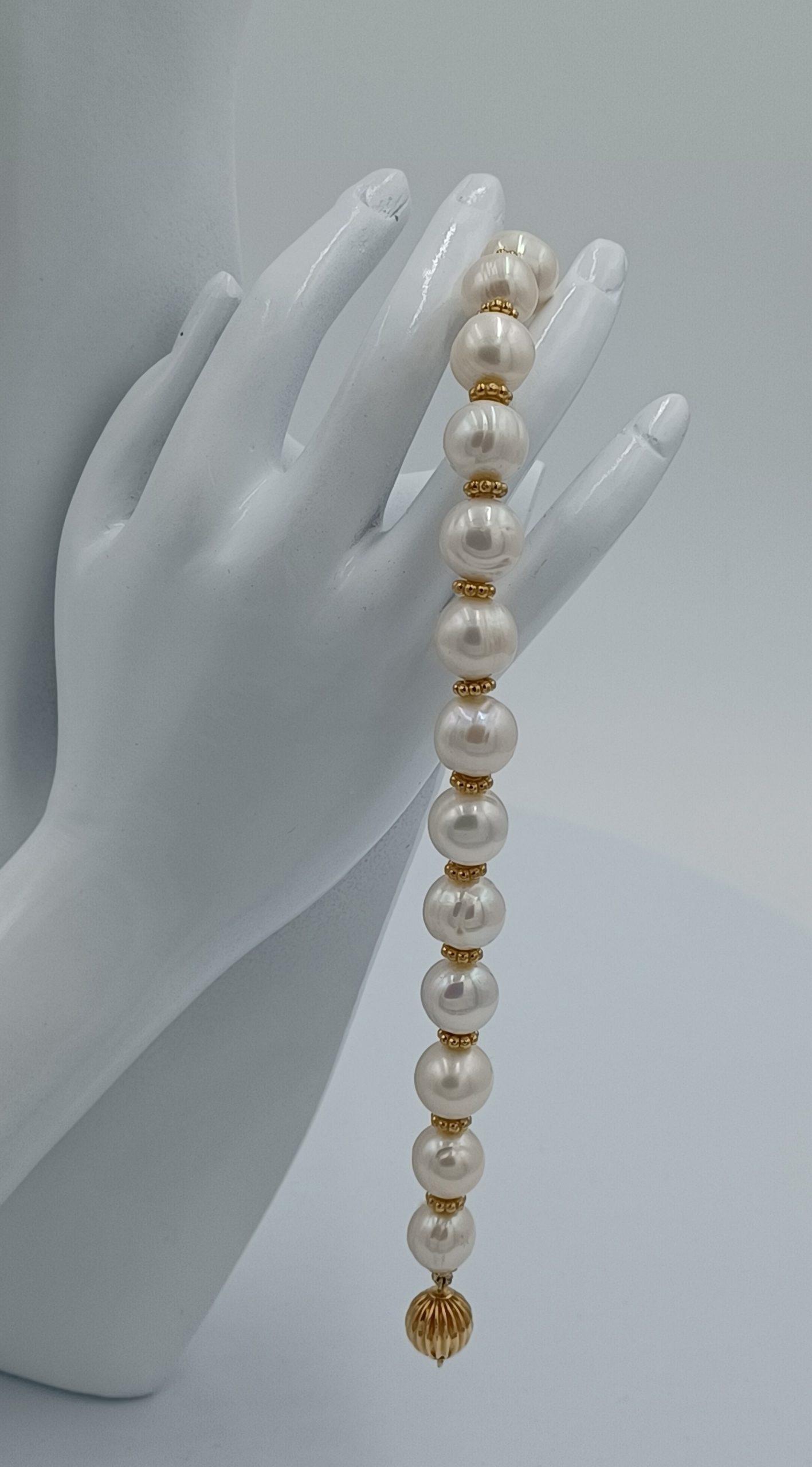 Opulence! Fabulous 10.5mm-11.0mm large round Hi-luster baroque cultured pearls. Adorned with 14kt gold Bali beads, 14kt gold round fluted clasp and end caps. WOW! 8.5” in length.