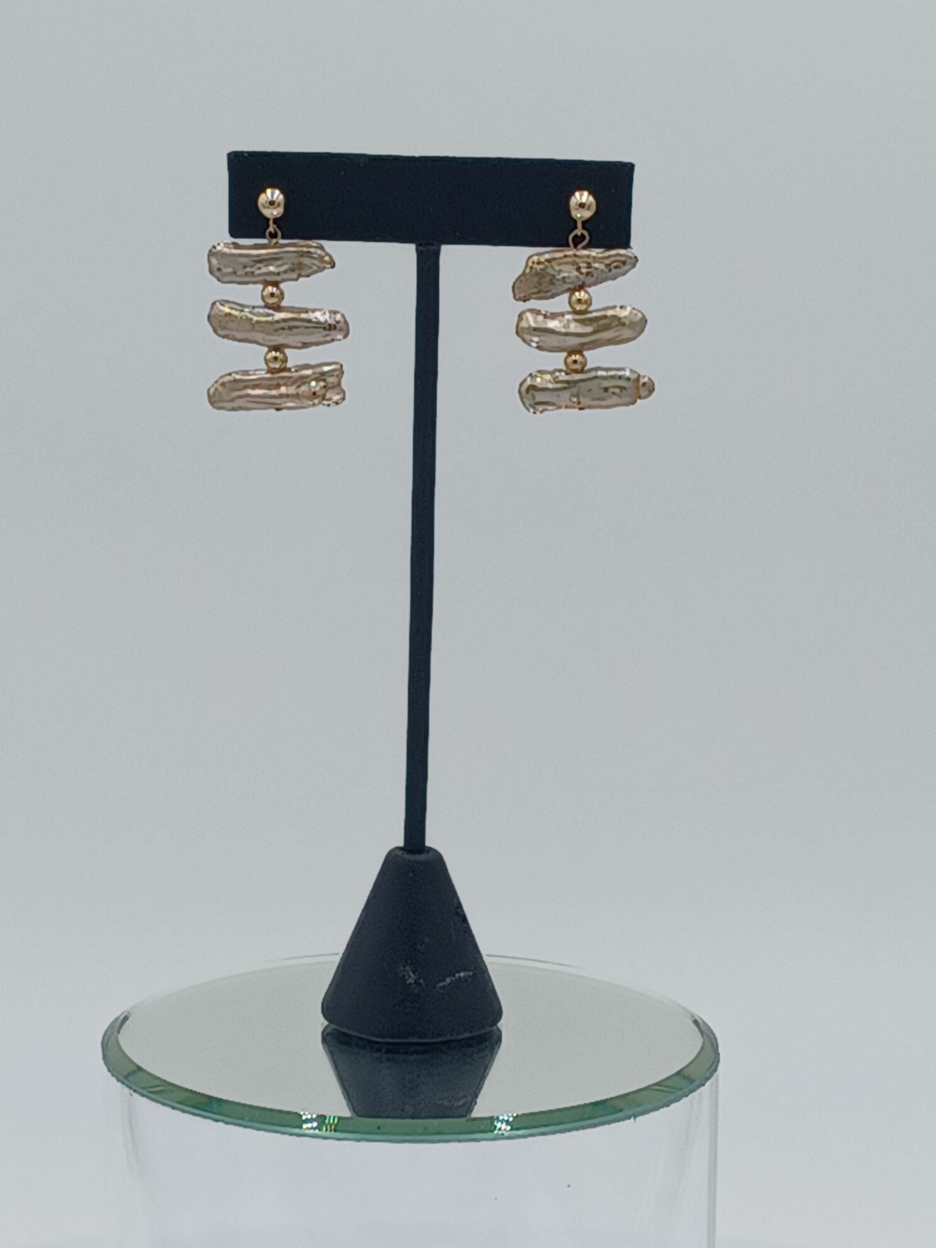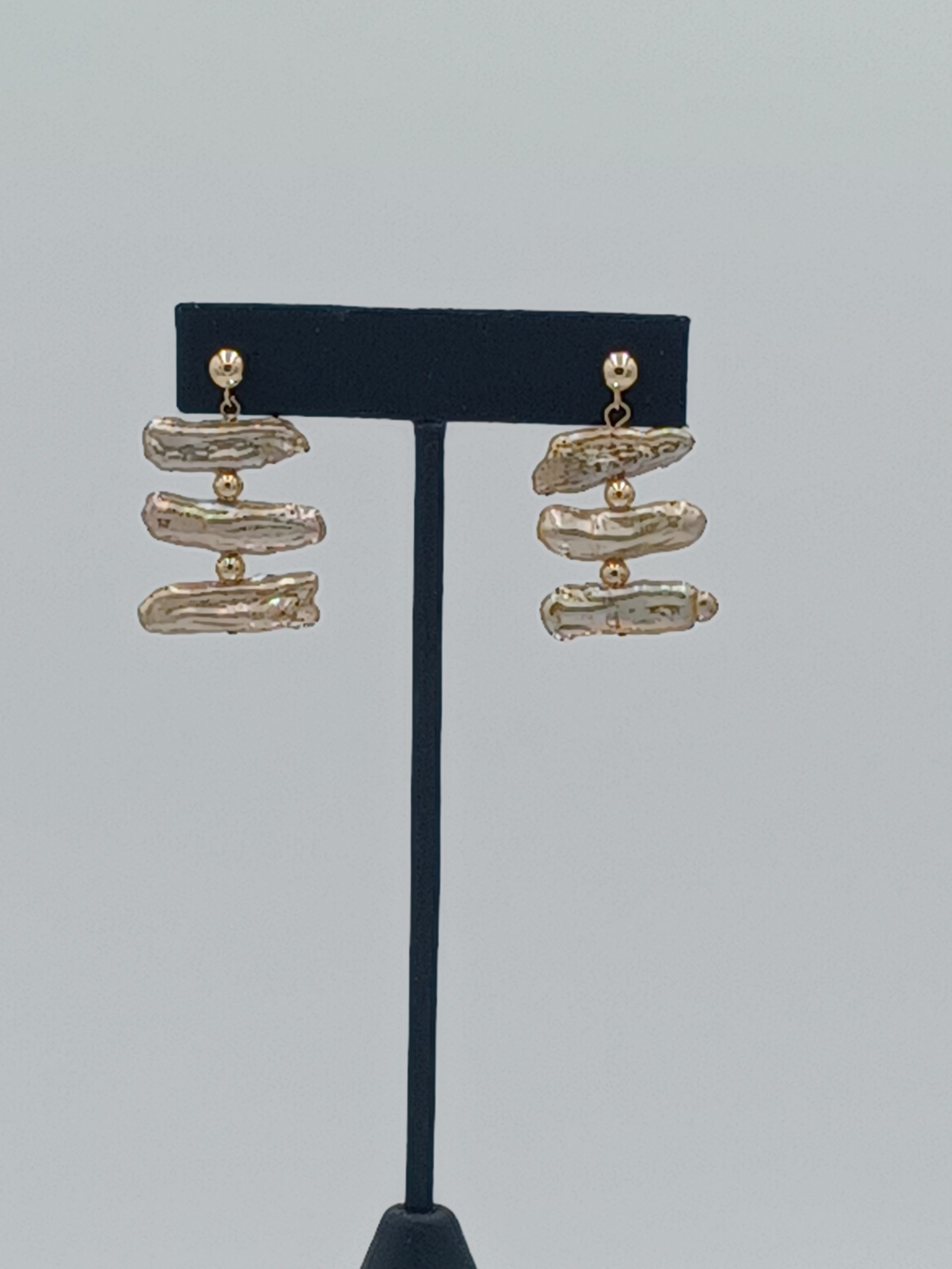 14kt gold posts. 1.25” drop length.