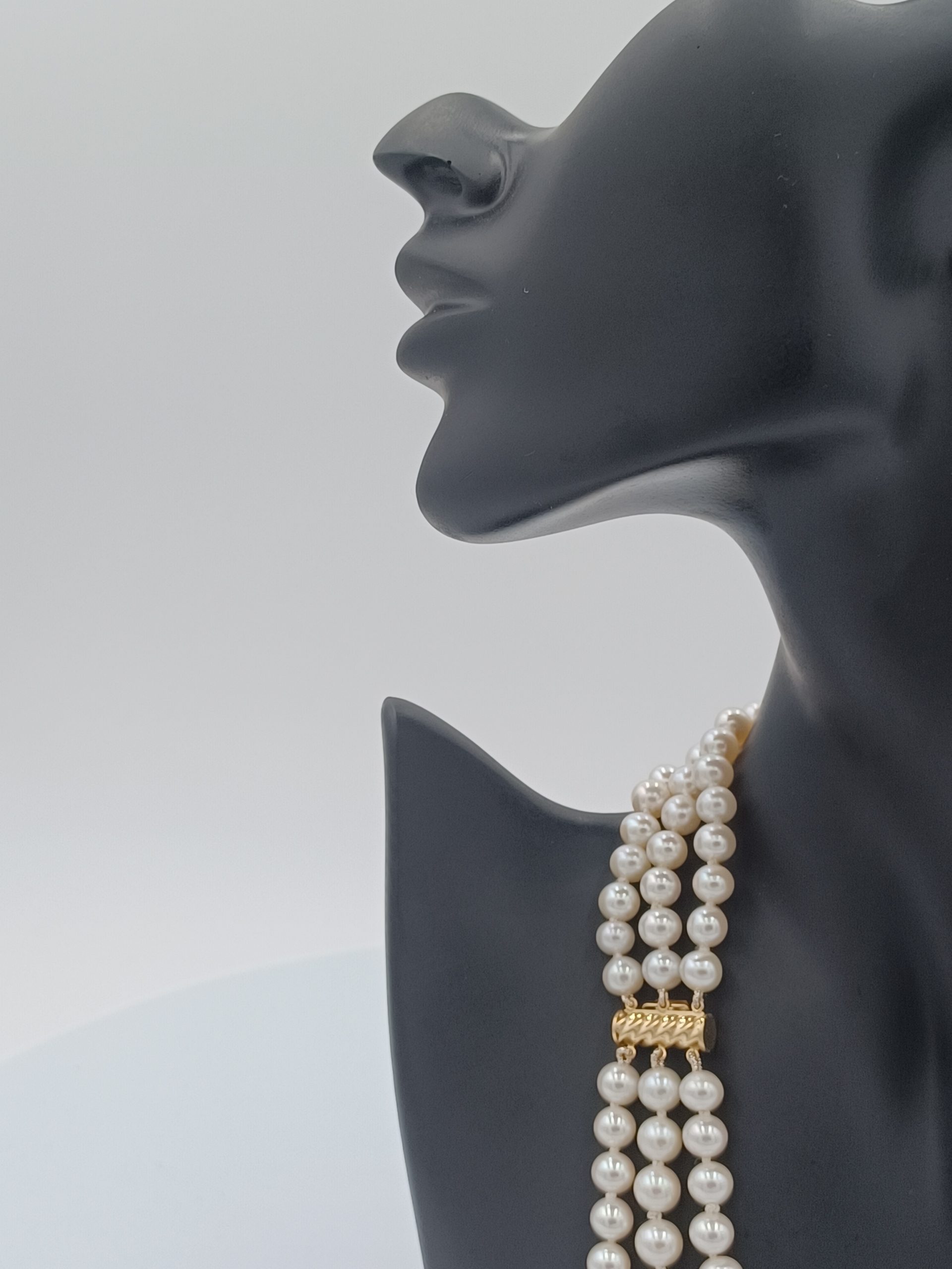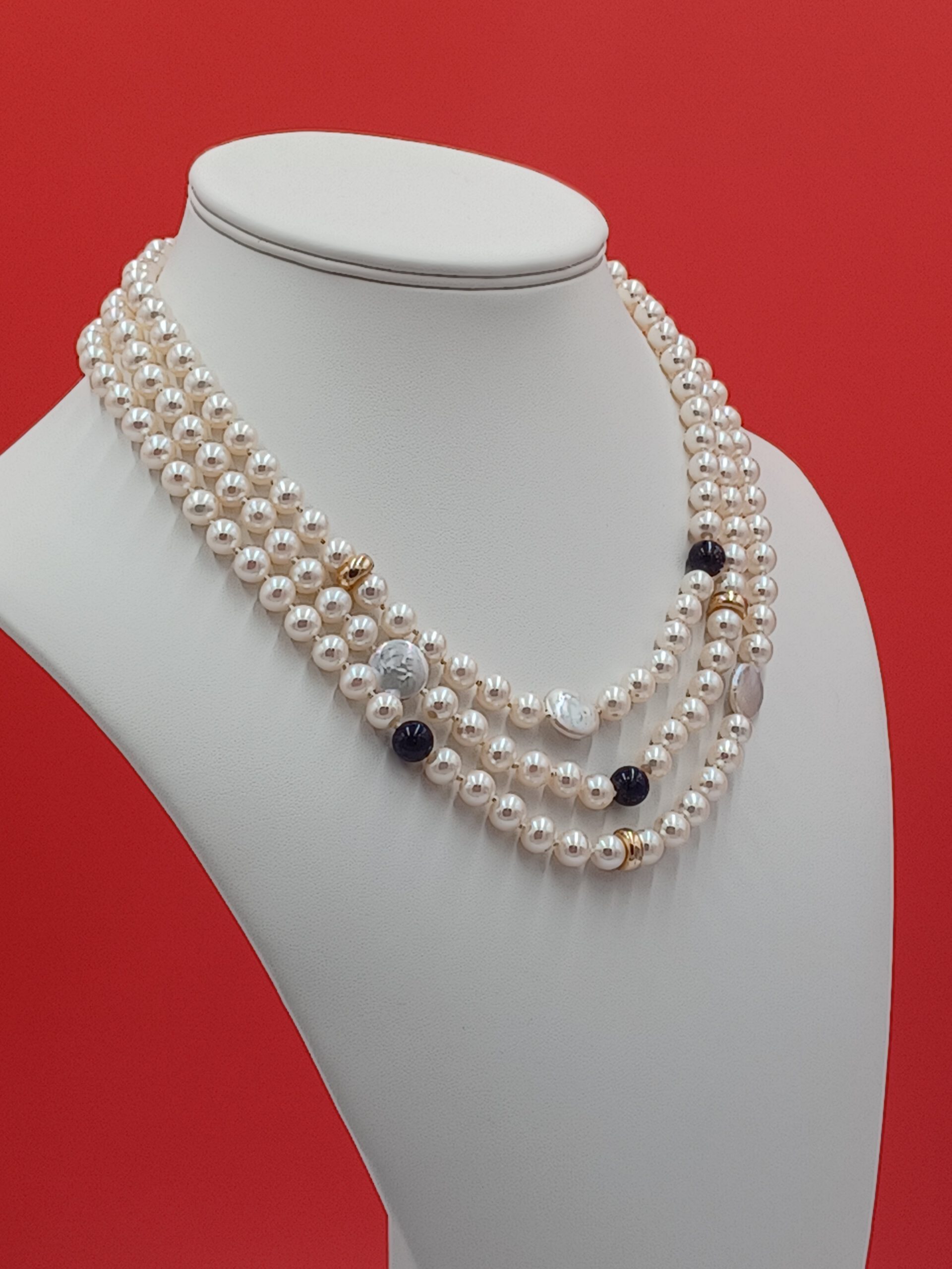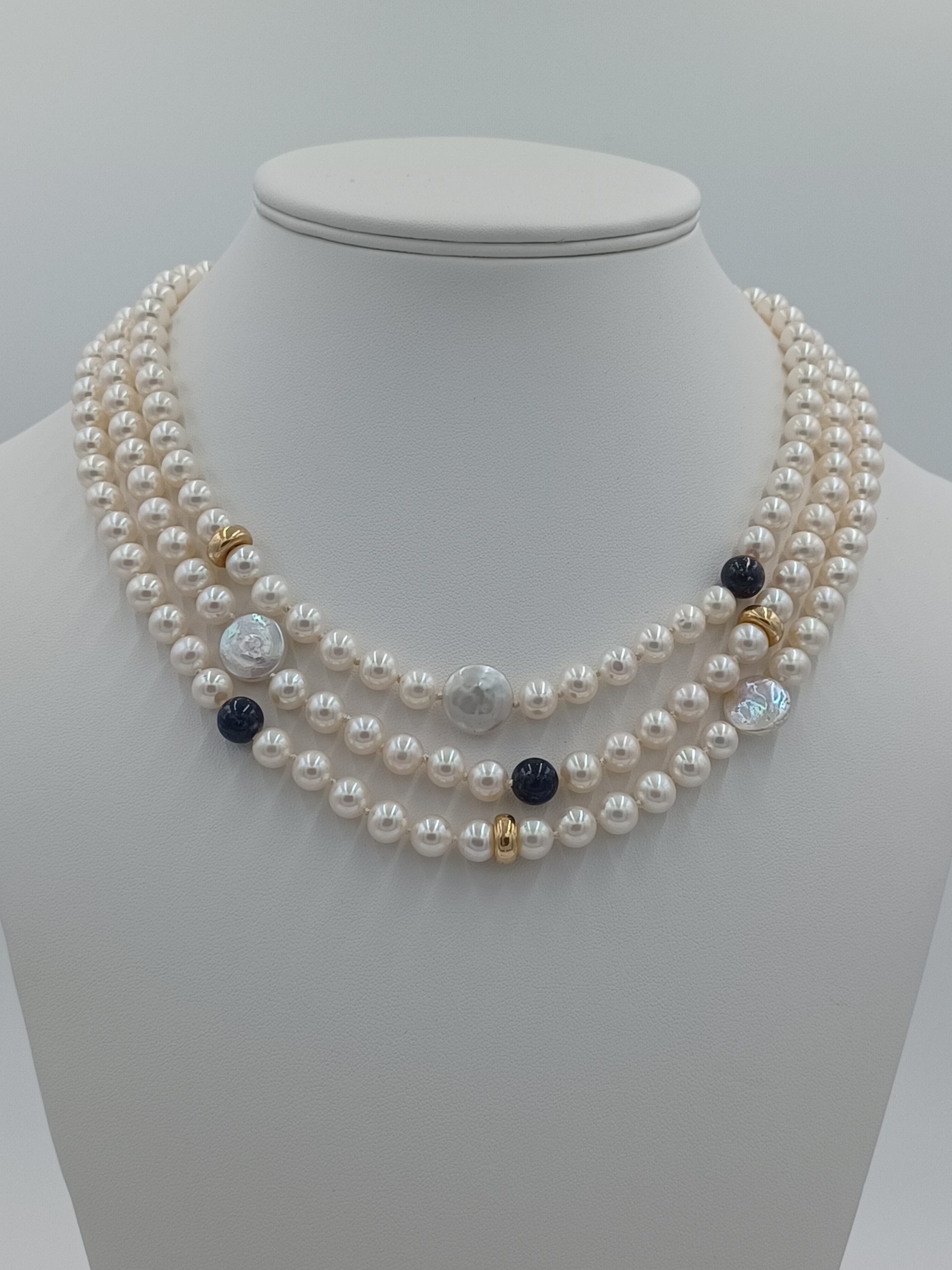 3 strands of Opulence! 7.5mm saltwater cultured pearls with stations of Lapis, hi-luster