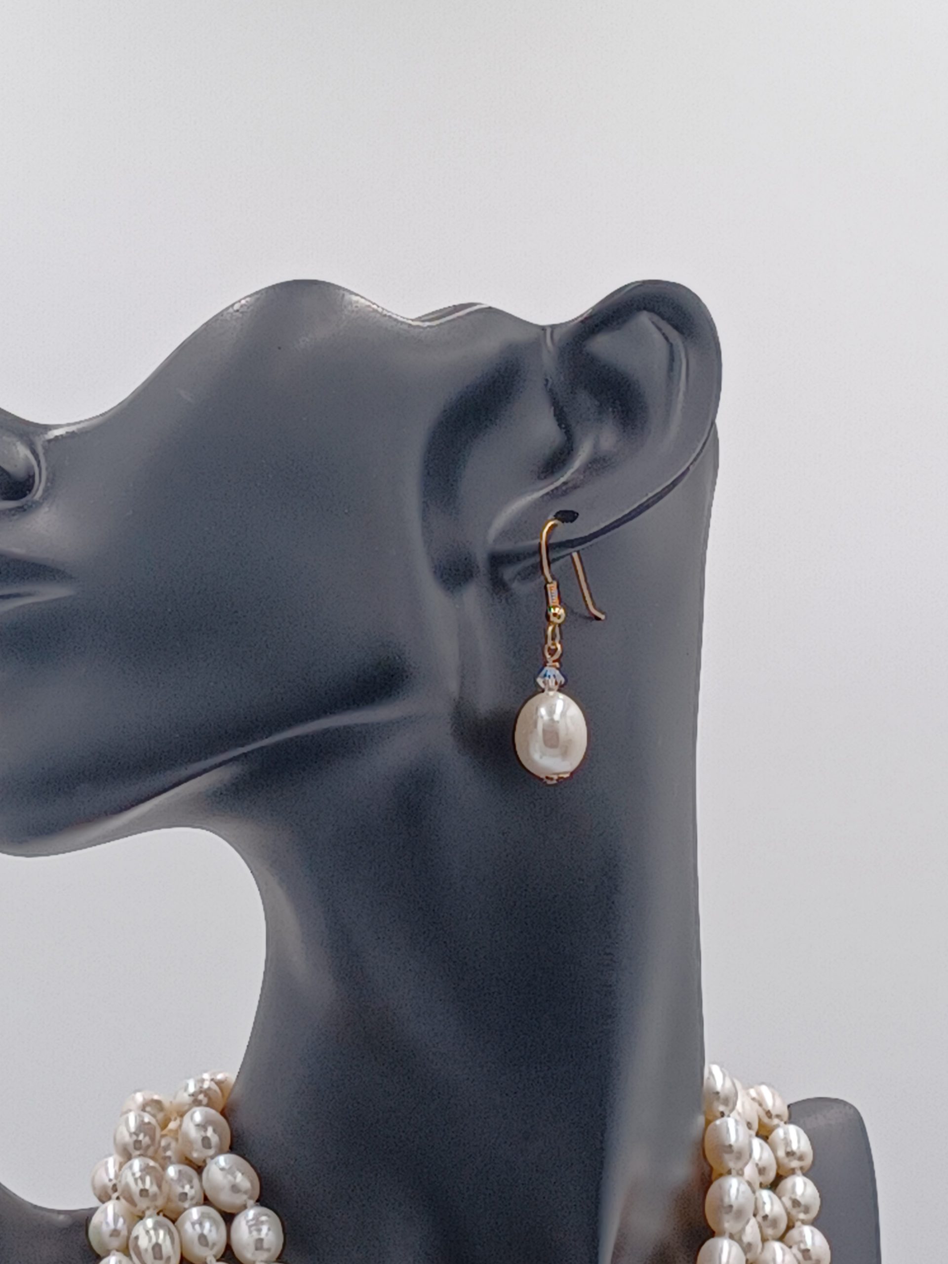 14kt gold end caps and Sheppard hooks. 1.5” drop length.